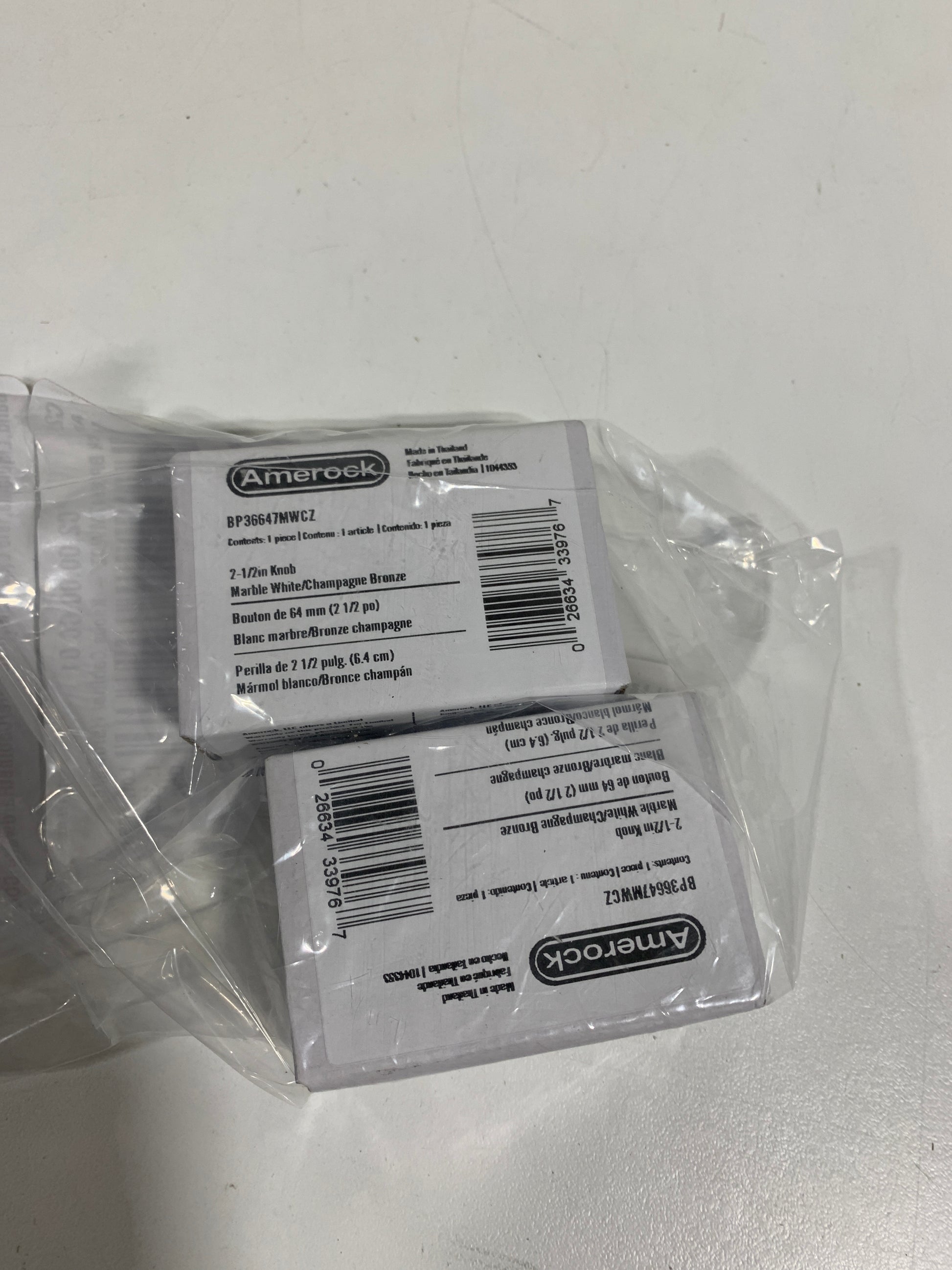 2 Carrione 2-1/2 Inch 64mm Length Marble White/Champagne Bronze Cabinet Knob