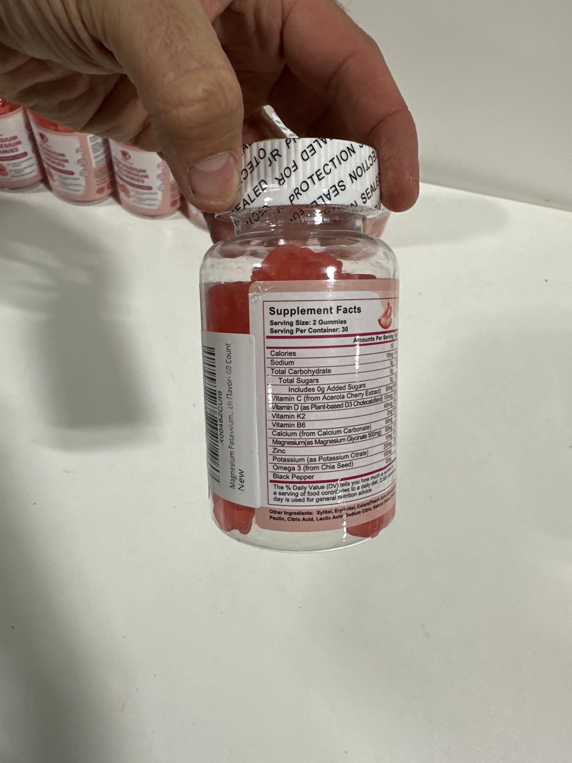 7 Potassium Magnesium Gummies - High Absorption Magnesium Glycinate & Potassium Citrate 200mg Plus Omega 3, B6, D3, K2 & Calcium - Chewable Gummy for Immunity & Energy - Peach Flavor - 60 Count