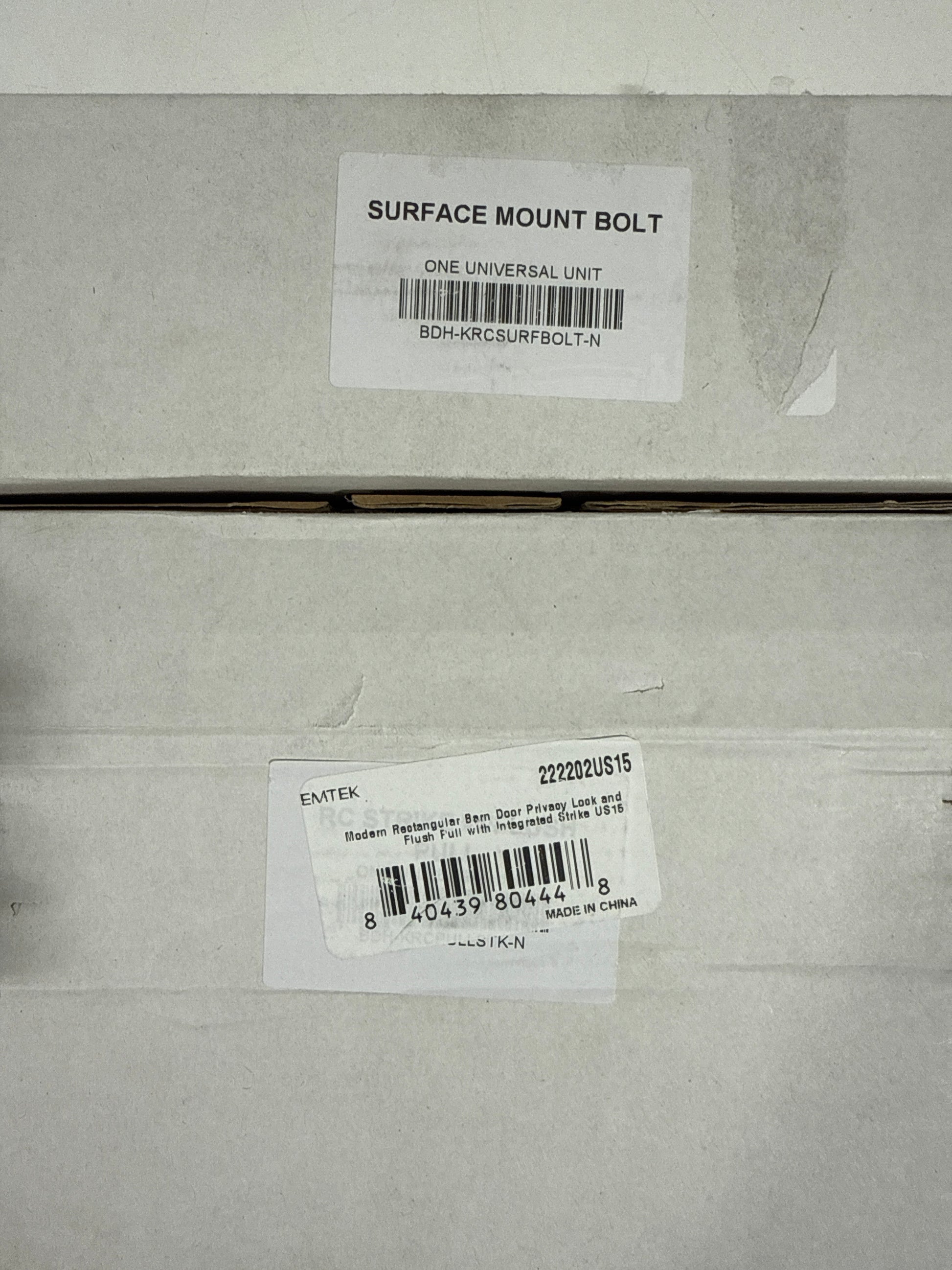 Emtek 222202 Modern Rectangular Surface Jamb Mounted Privacy Lock with Flush Pull and Integrated Strike for Barn Doors Satin Nickel