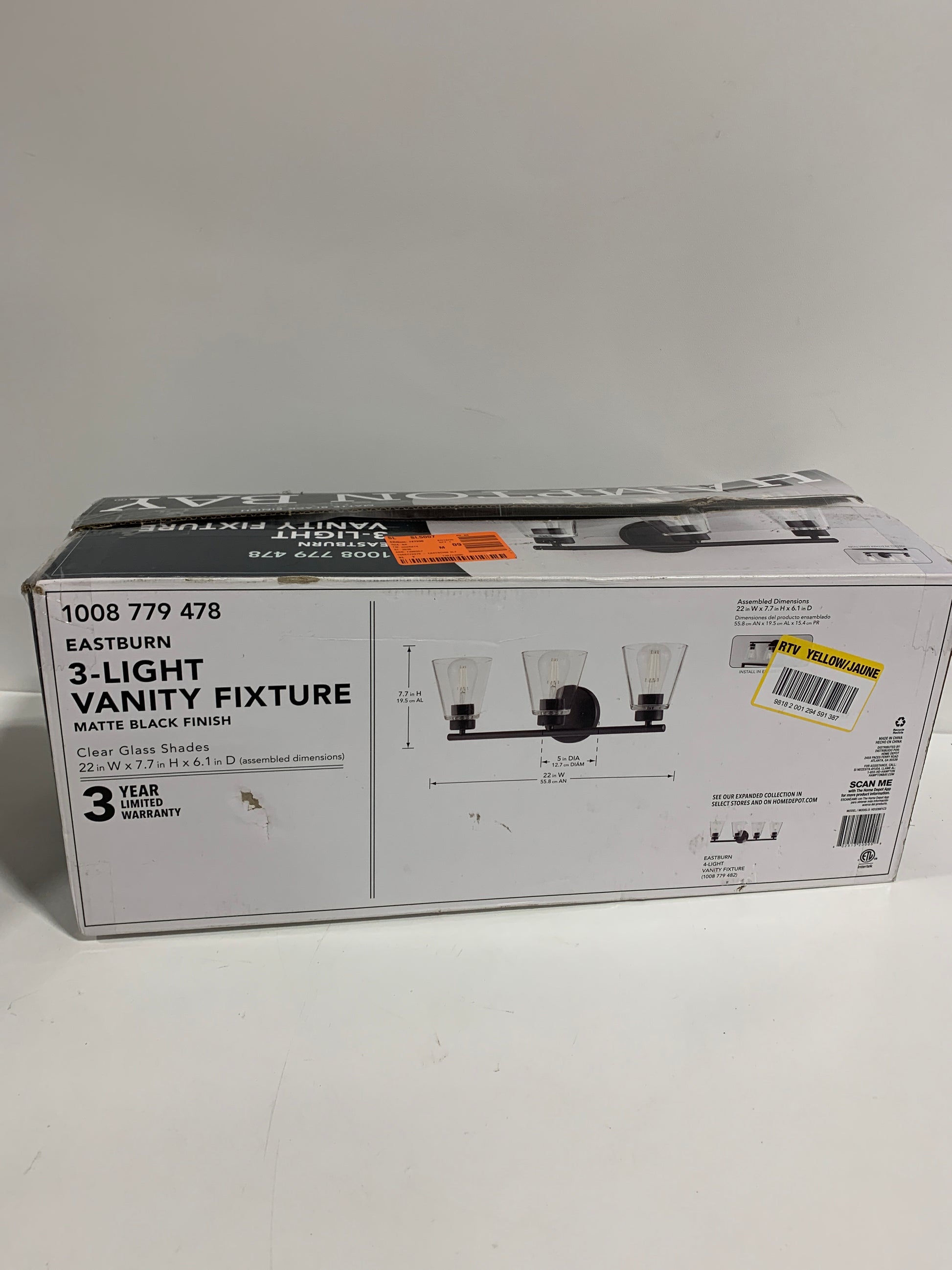 Hampton Bay Eastburn 22 in. 3-Light Matte Black Vanity Light with Clear Glass Shades