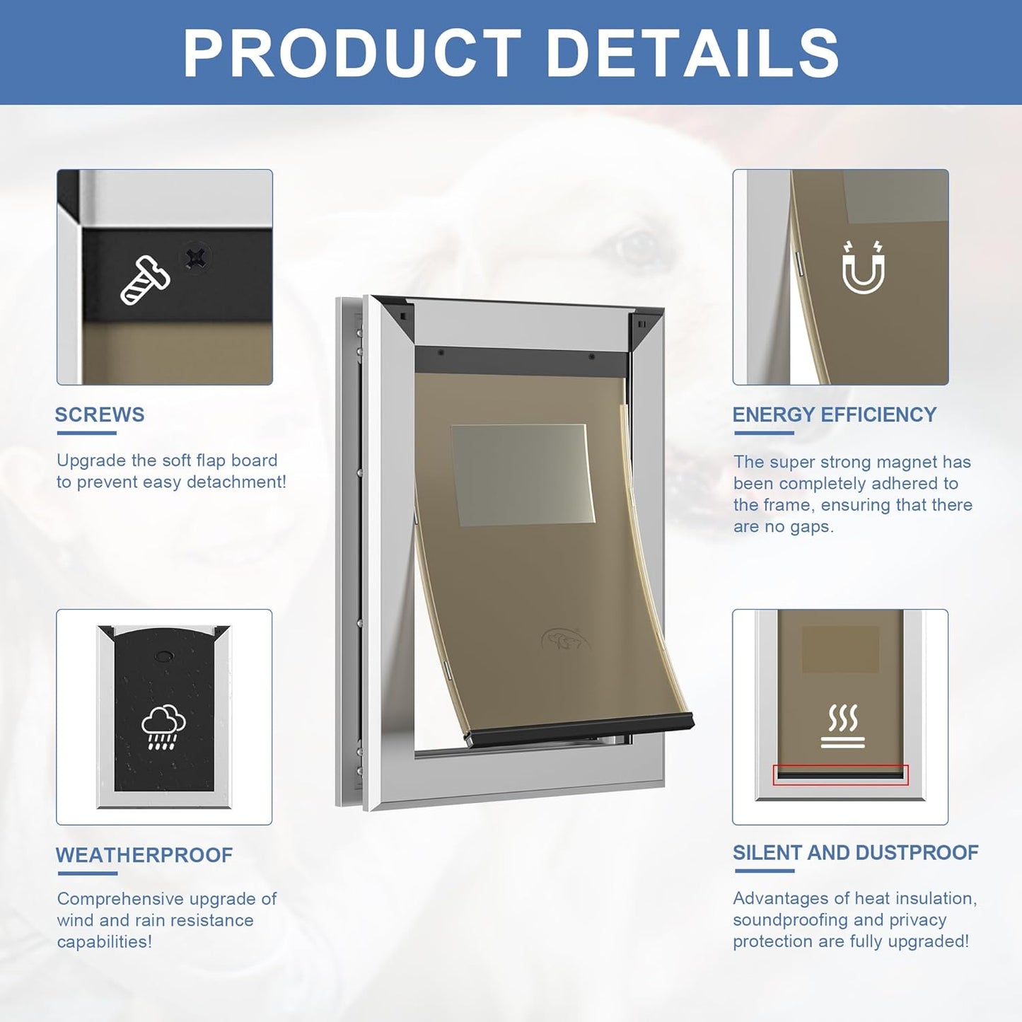 - 【Sturdy & Energy-Saving】All MAVRICFLEX dog doors undergo rigorous quality control and craftsmanship inspection to ensure their excellent sealing. The soft flap version has been tested multiple times to ensure that the flip part is solid and reliable, and will not easily come off. In addition, the soft flap is designed with strong magnets, allowing it to fully adhere to the frame without leaving any gaps. Even a gentle breeze won't easily blow it open, greatly improving energy efficiency !