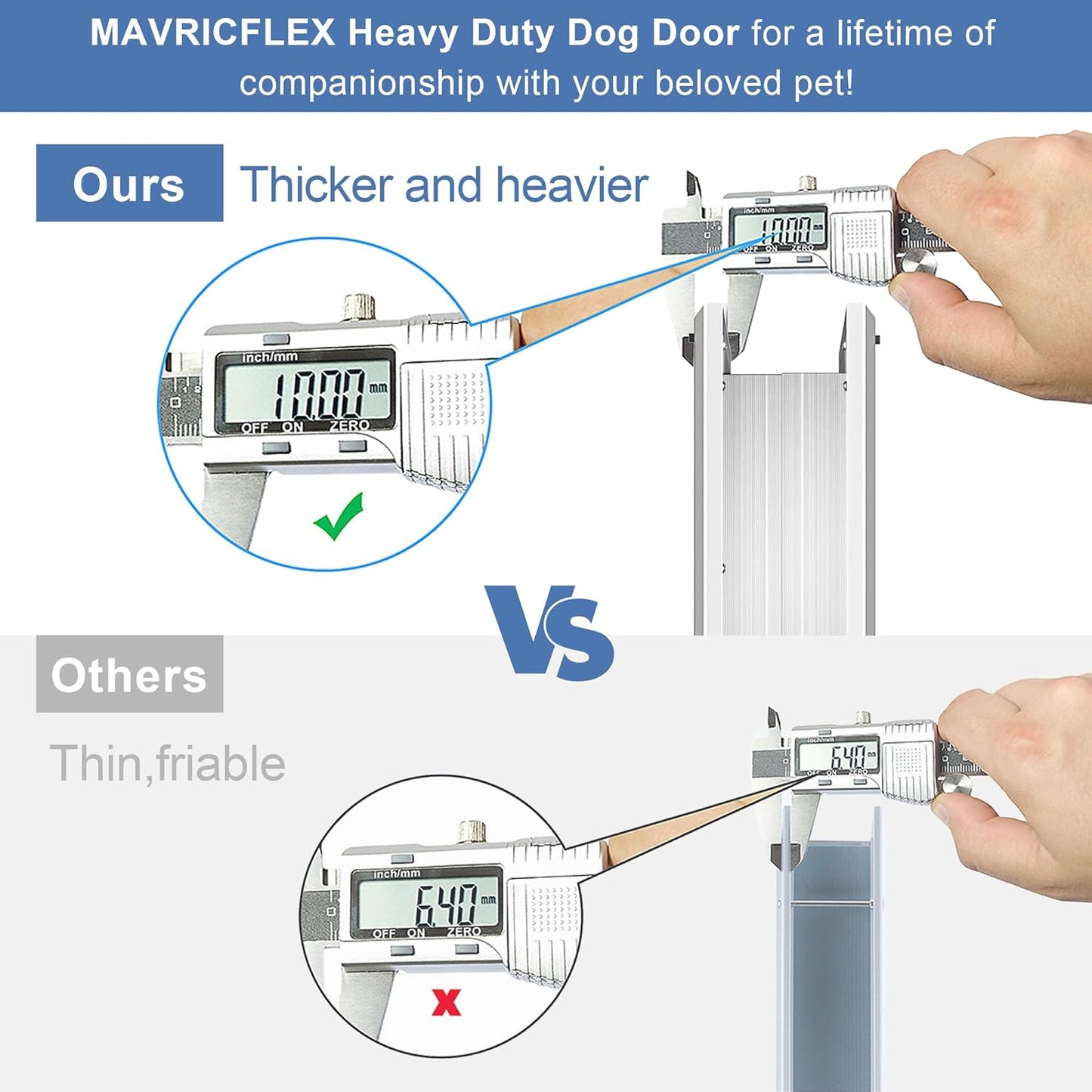 - 【MAXIMUM FREEDOM FOR PETS】MAVRICFLEX heavy-duty dog door is made of the best aerospace-grade aluminum alloy, which provides exceptional strength and durability. Compared to regular aluminum alloy, the MAVRICFLEX heavy-duty dog door is heavier and thicker, capable of withstanding greater pressure and impact. Whether it's a large breed or an active small breed, our dog doors can withstand their coming and going, ensuring a long-lasting lifespan!