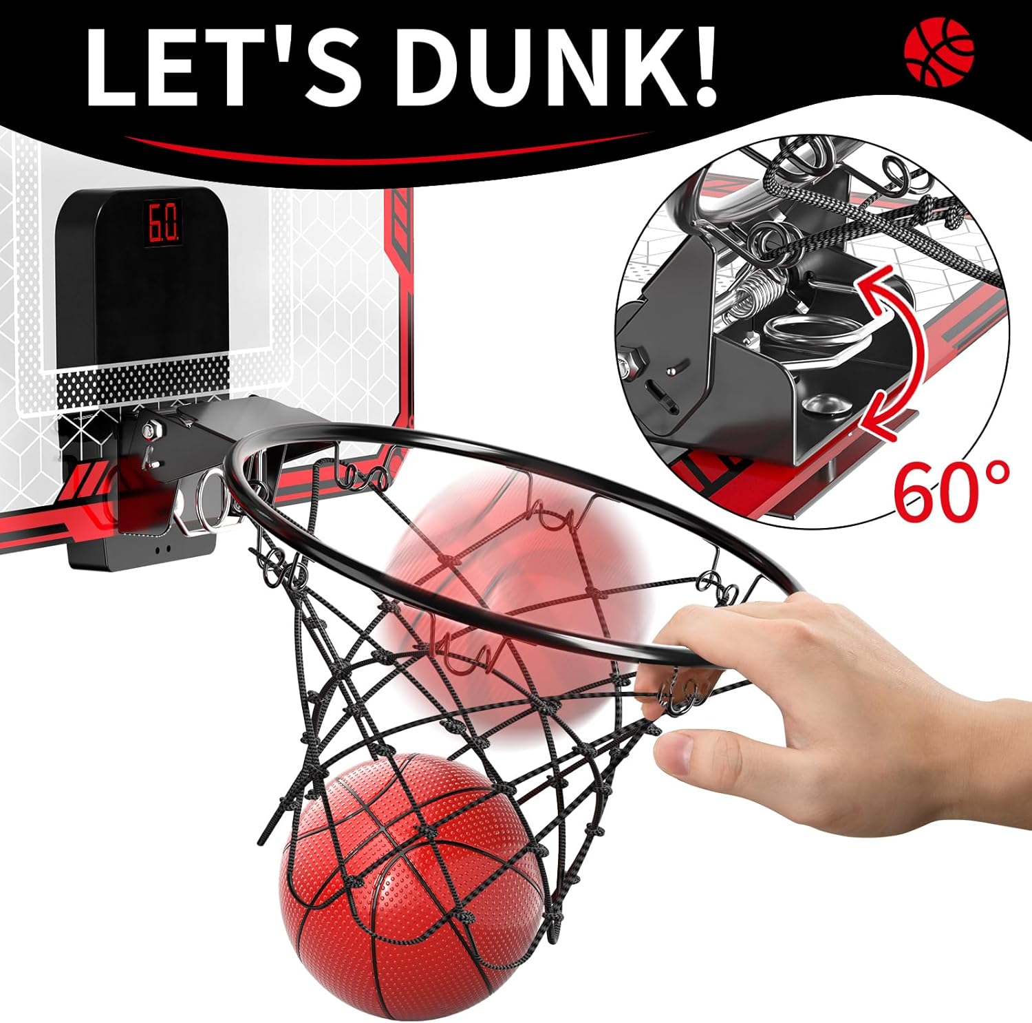 - Multiple Basketball Game Modes: Our electronic basketball have an electronic scoreboard function. To cater to the needs of different children, we've specially designed various game modes. ① Score Mode: each successful shot earns 2 points. ② Countdown Scoring Mode: A 60-second countdown, with 2 points for each basket made. ③ Encouragement Mode: A 10-second countdown where every successful shot is met with cheers. These modes ensure a fun and engaging experience for kids of all ages!