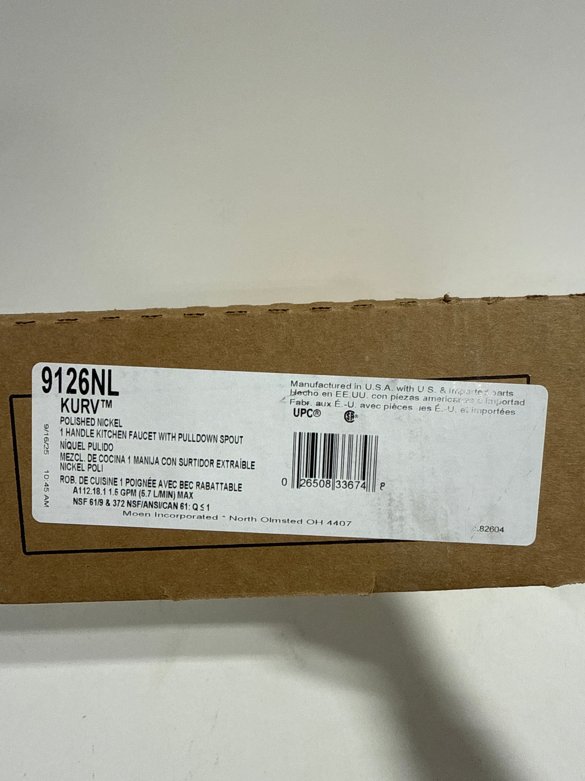 Moen manufacturer's recommended retail price $680.00 USD