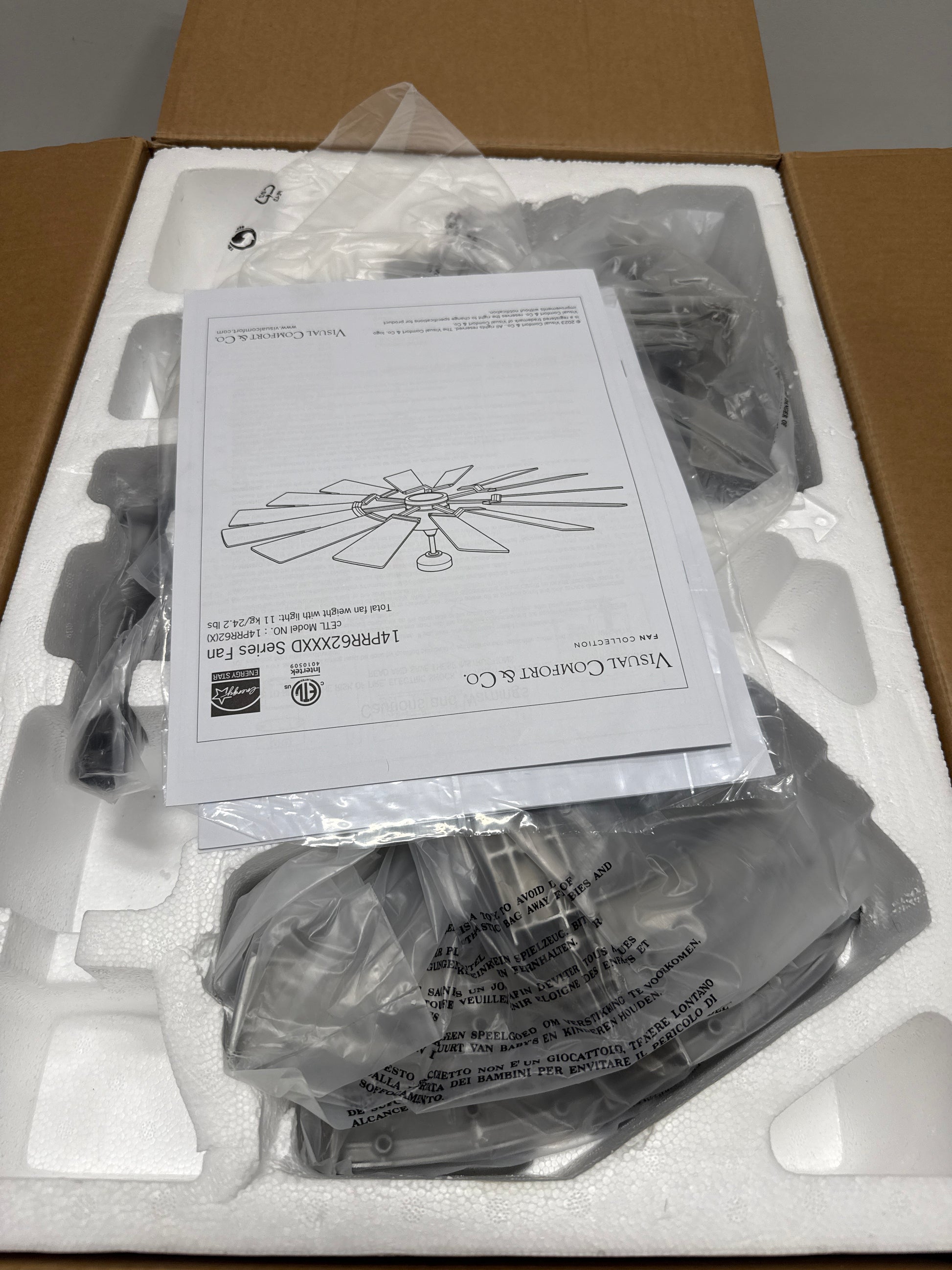 Monte Carlo 14PRR62AGPD Prairie Windmill Energy Star 62" Outdoor Ceiling Fan with LED Light and Hand Remote Control, 14 Wood Blades, Aged Pewter