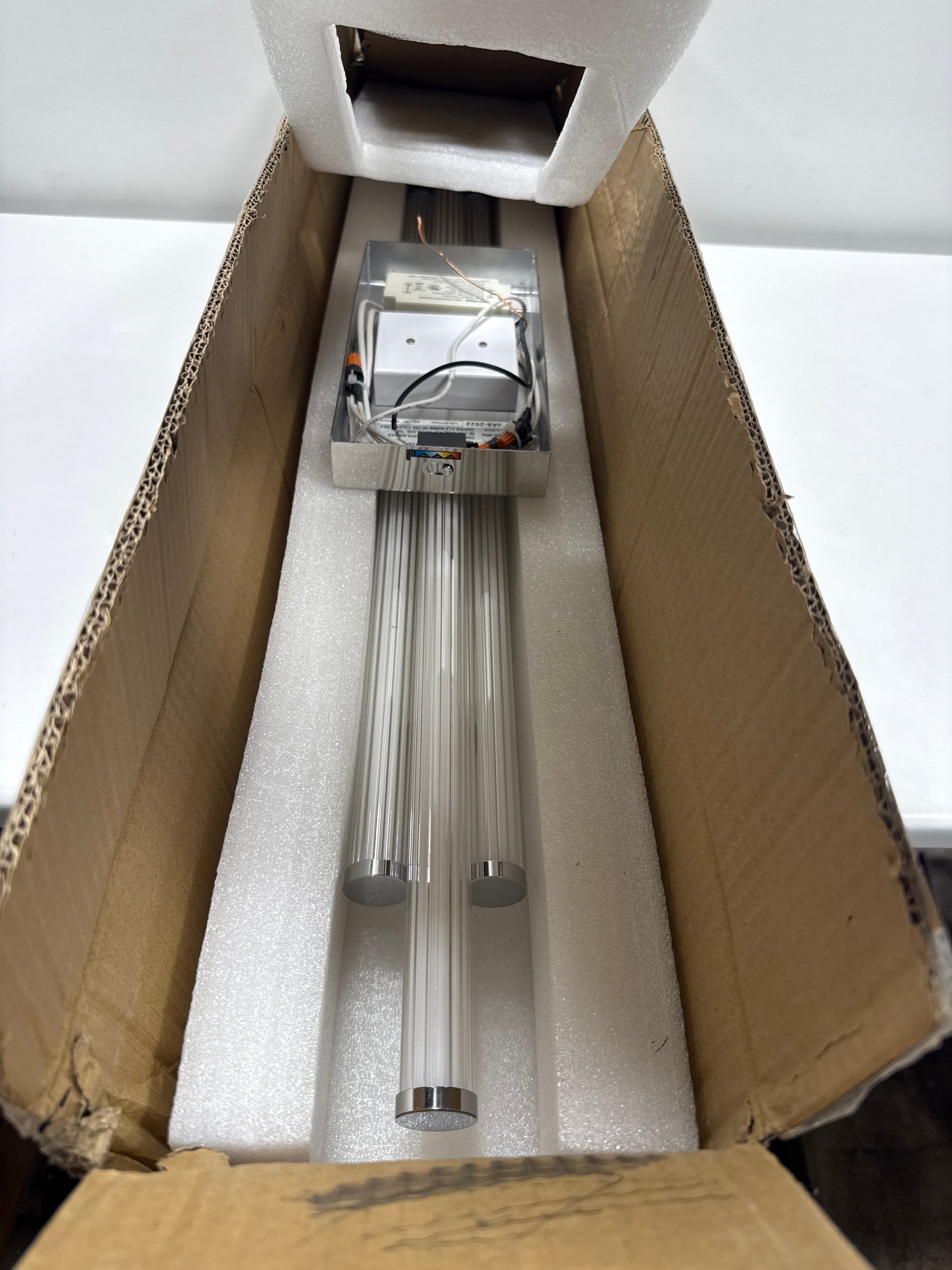 - Diffused Illumination: Clear ribbed acrylic rods create a unique and eye-catching visual, while its luxurious finish adds a touch of minimalistic refinement and sophistication to your bathroom lighting and décor