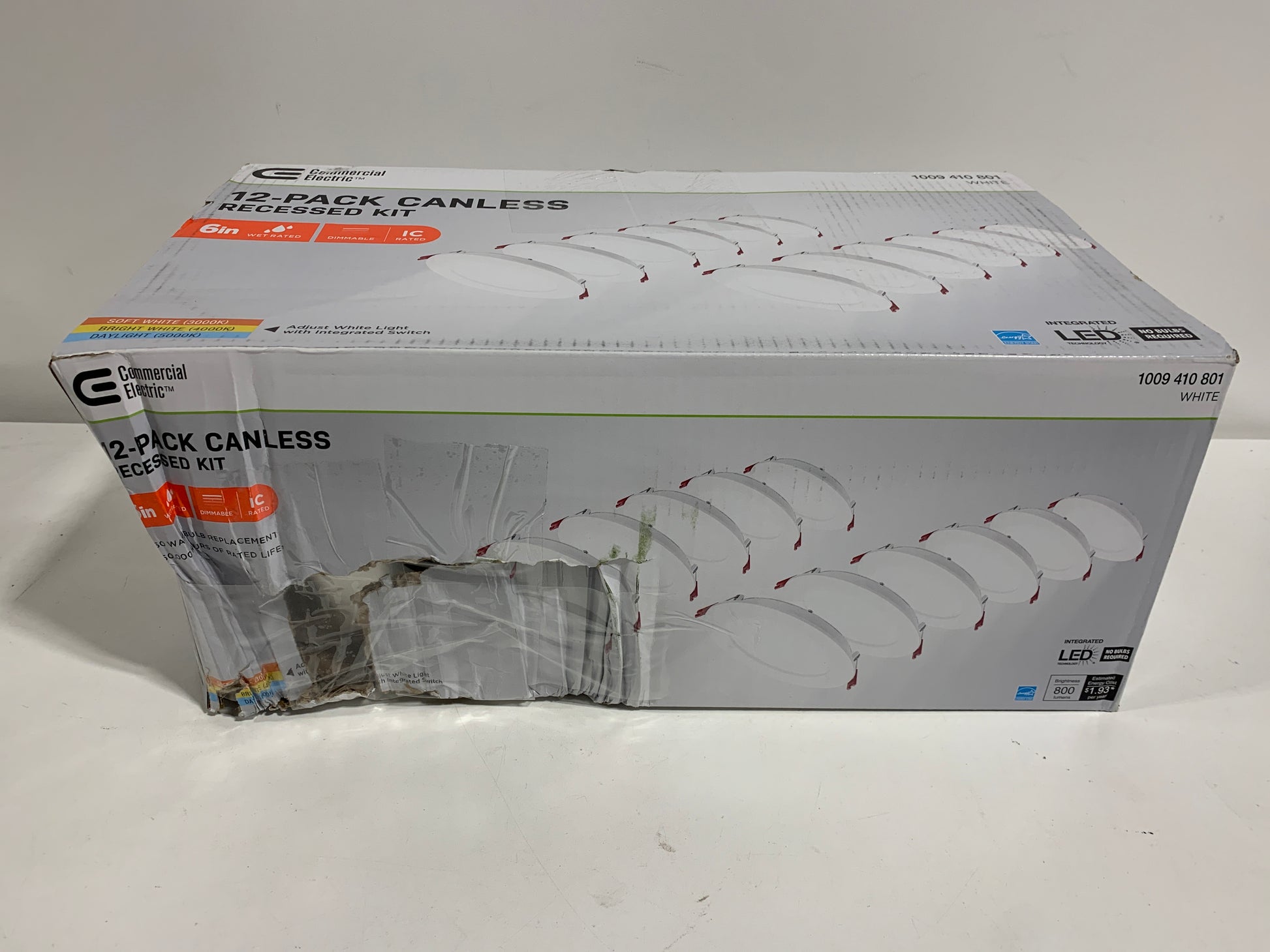 Commercial Electric Ultra Slim Recessed Lighting Kits are the recessed lights of the future. Not only is each fixture designed specifically for small spaces where height clearance is limited such as beams or ductwork, you can change the color temperature with a flick of a button. The integrated color changing switch is located on the cable so you can choose between a 3000, 4000 or 5000 Kelvin temperature to best suit your needs. 3000 K is perfect for relaxing, 4000 K is the ideal choice for everyday affairs and 5000 K is great for task lighting in a basement, hallway, or work area. Energy Star certified, and Insulation Contact rated for direct contact with insulation, these lights won't overheat, do not require a bulky can and will last for years to come - 50 000 hours or approximately 34 years if used for 4 hours per day to be exact. Wet rated and certified airtight, this 6" kit is perfect for your bathroom, drop ceilings, outdoor soffits, larger spaces, and all general lighting applications. Color: White. Material: Alloy.