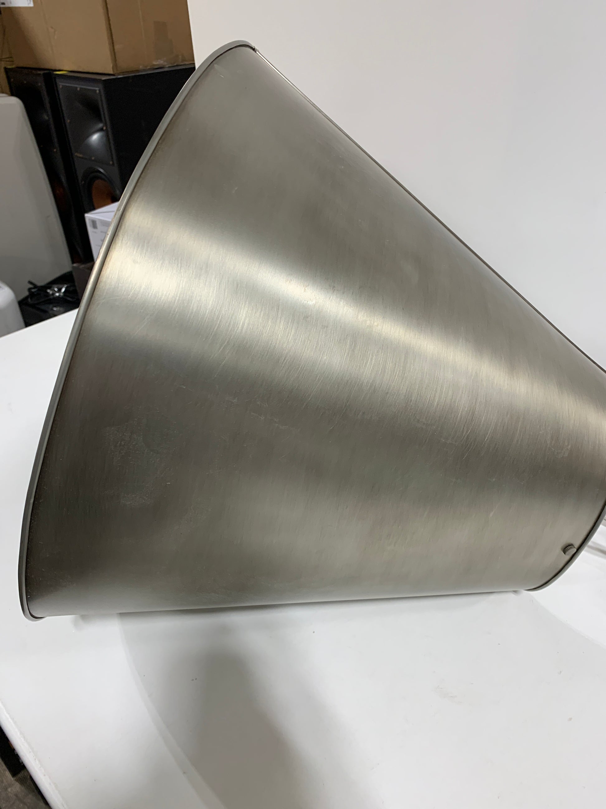 Open box Cone slightly bent inward not a complete circle, should be able to be bent back. Sold as is, never installed.