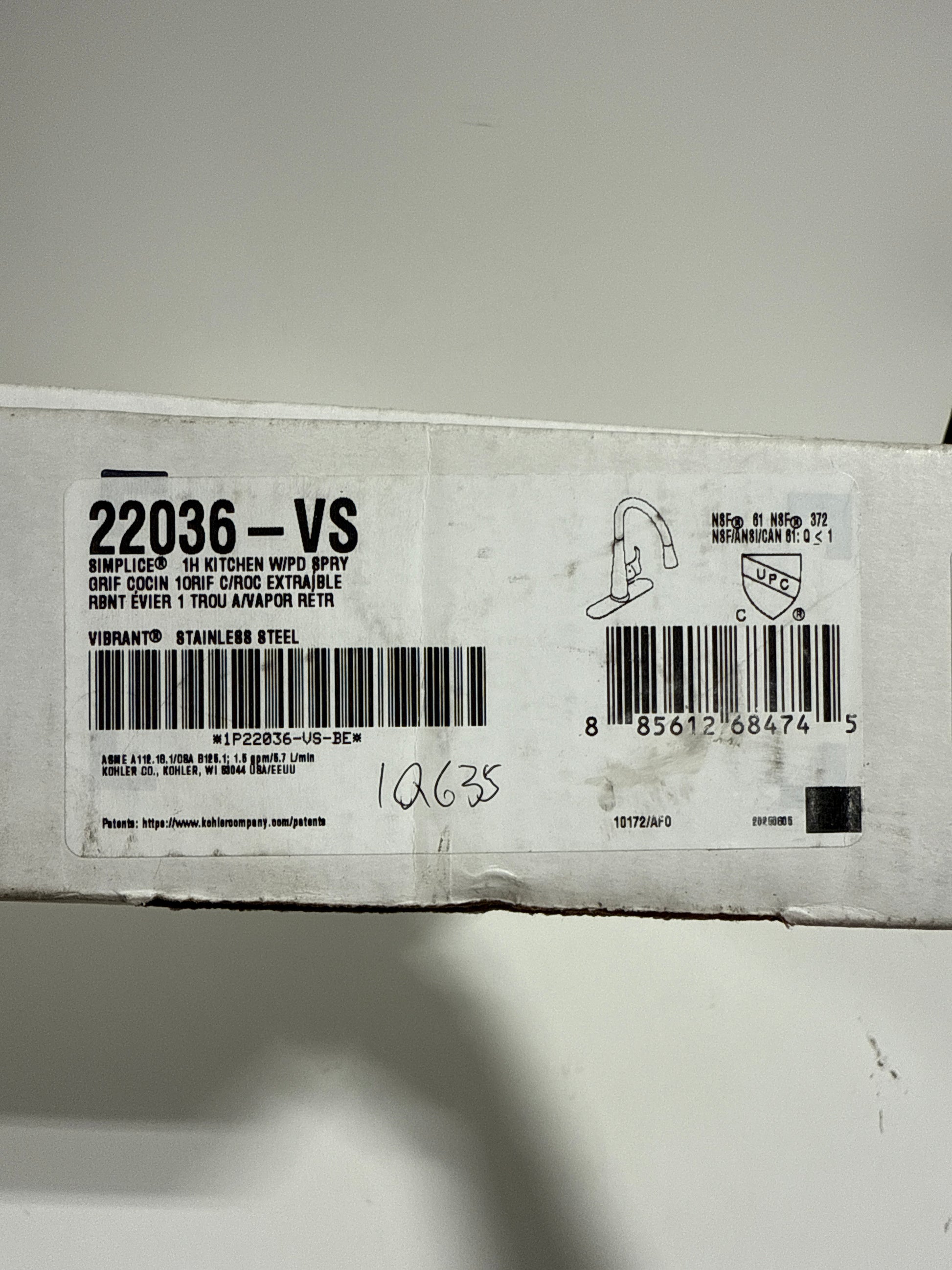 Kohler manufacturer's recommended retail price $605.00 USD