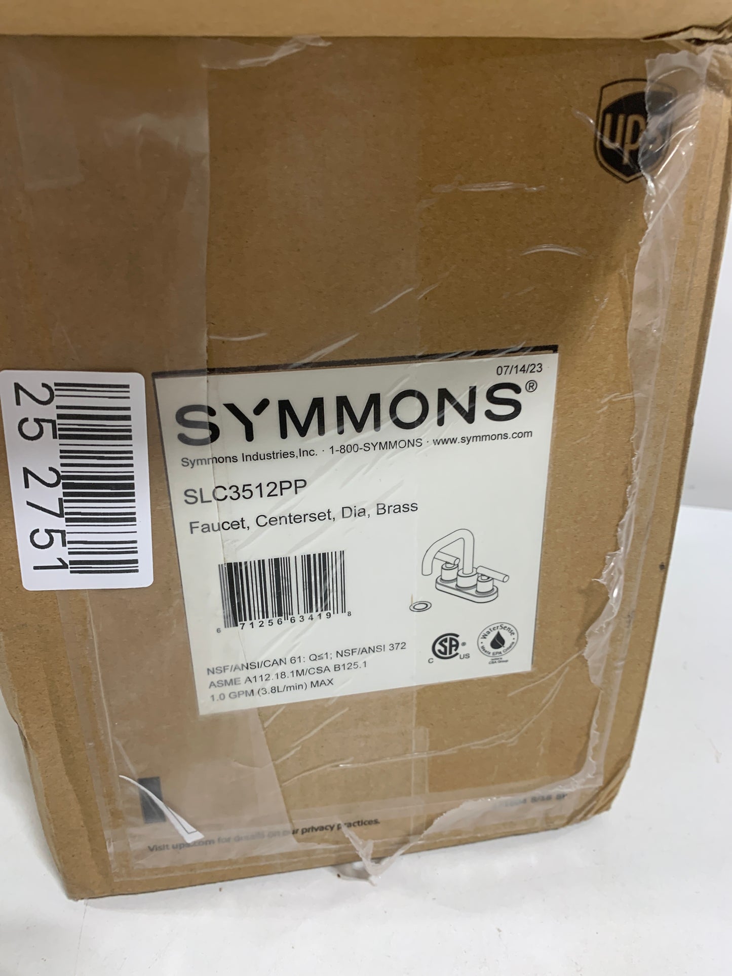 Symmons manufacturer's recommended retail price $180.00 USD