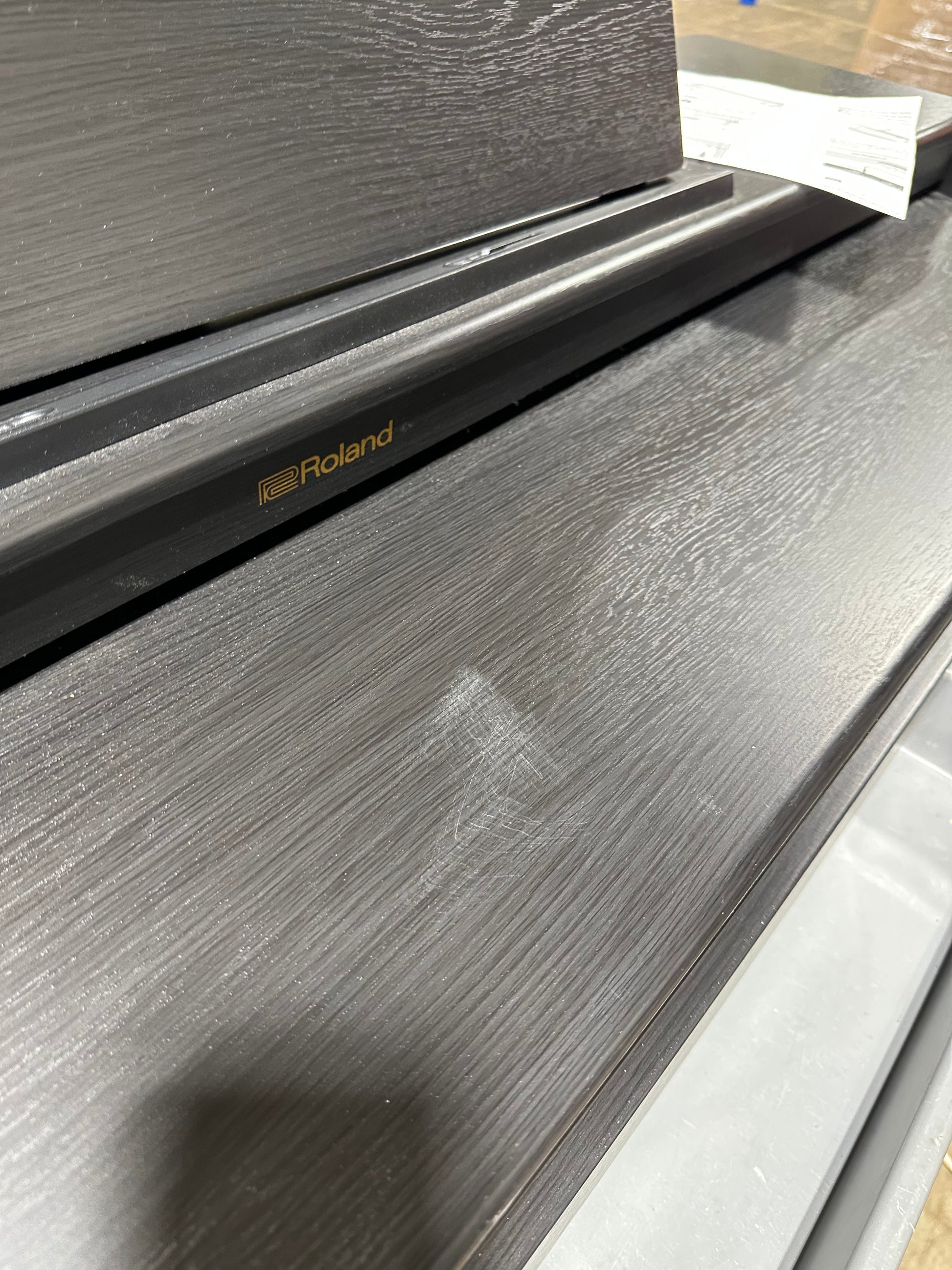 Lightly Used Scratch and Dent Piano, works as expected. Comes unassembled. Does not include pictured warehouse cart.