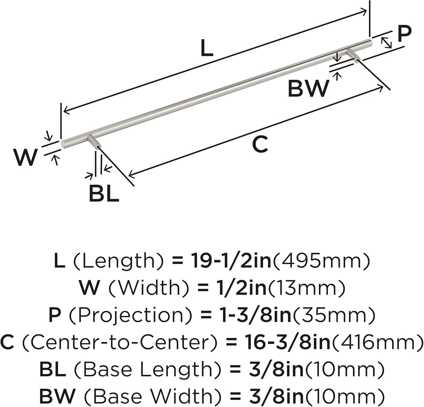 6 Amerock Bar Pulls 16-3/8 inch (416mm) Center-to-Center Satin Nickel Cabinet Pull, BP19015G10