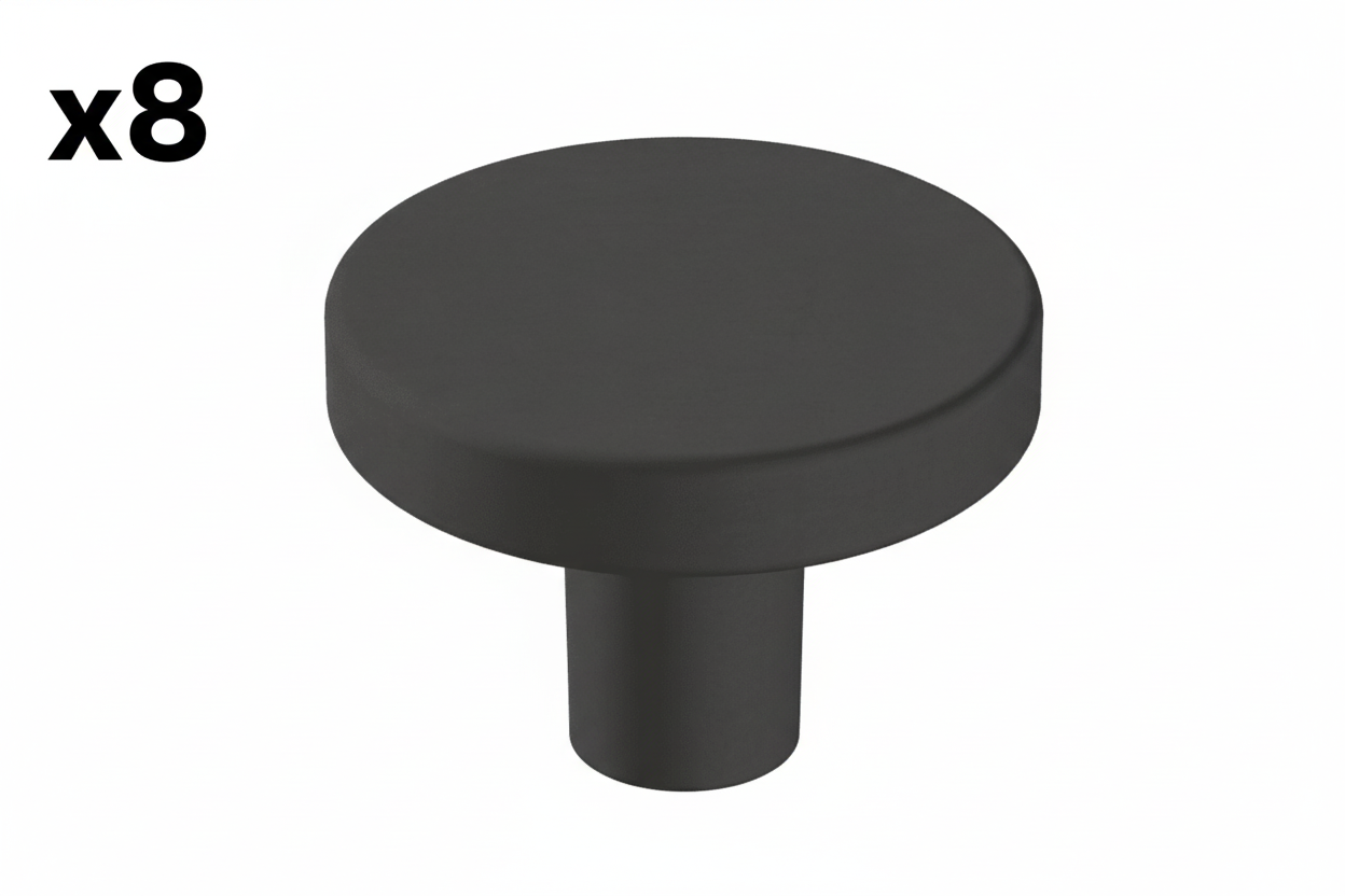 8 x Versa 1-3/8 in. (35mm) Modern Matte Black Round Cabinet Knob