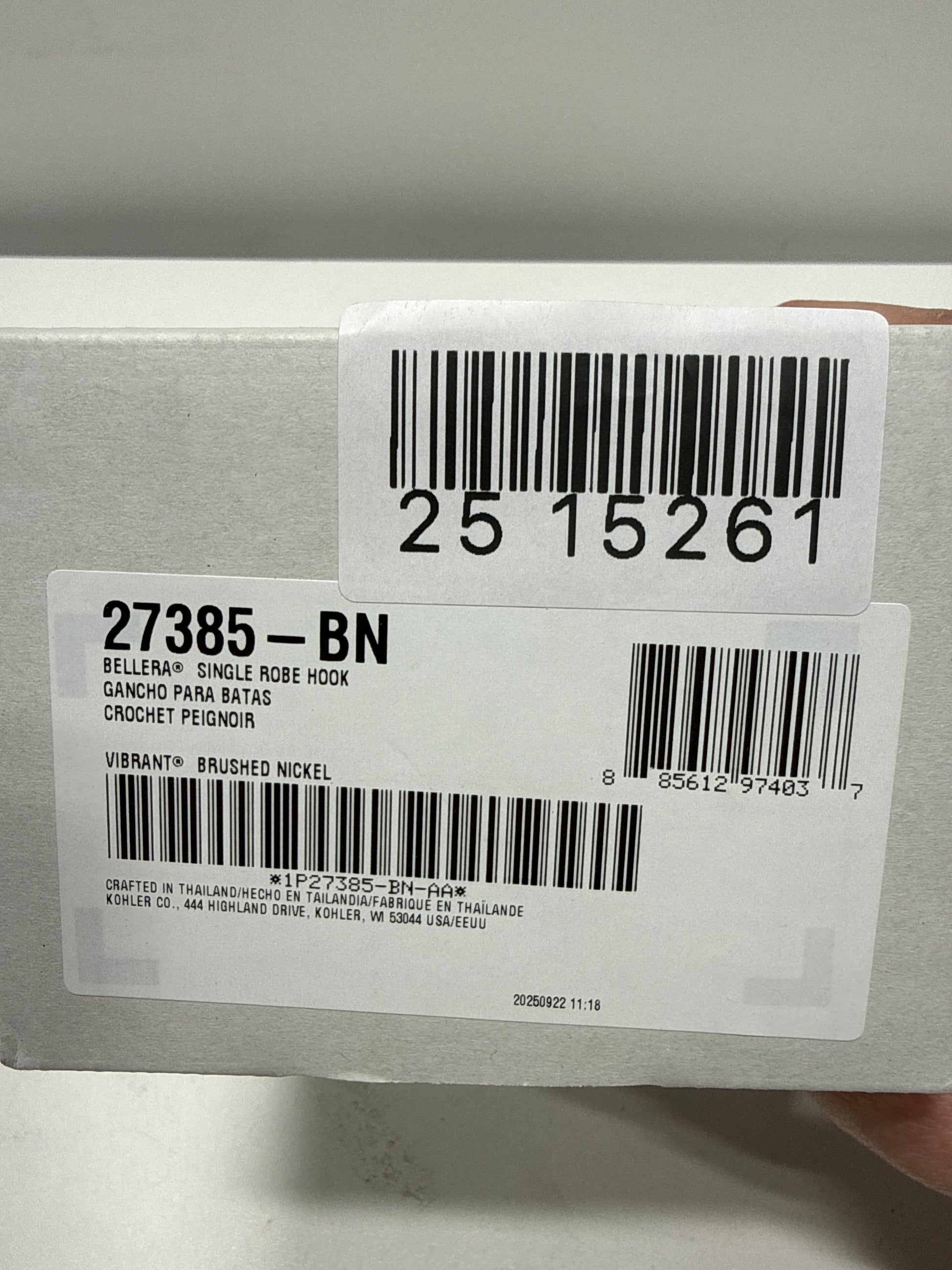 Kohler manufacturer's recommended retail price $25.00 USD