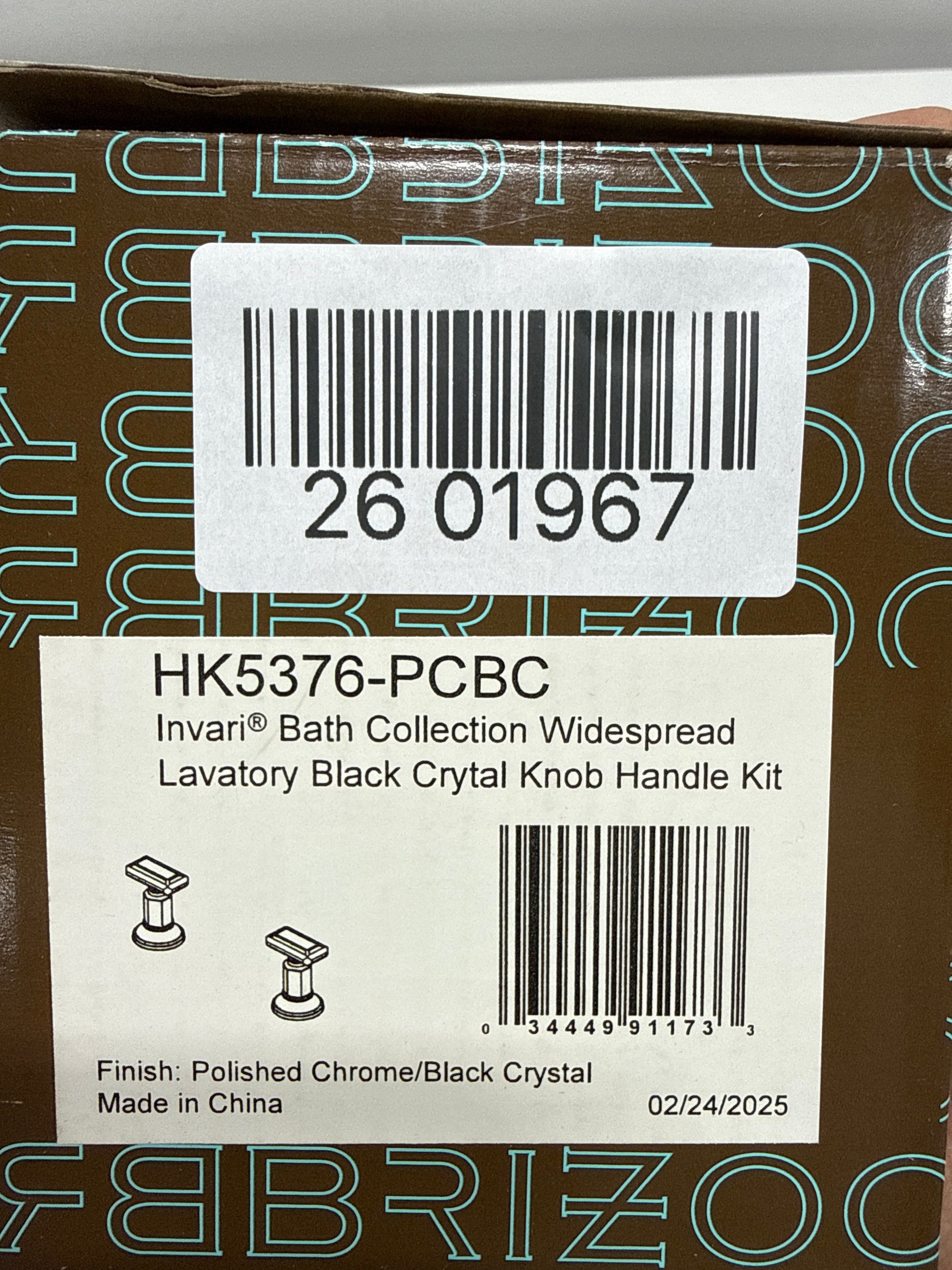 Brizo HK5376 Invari Widespread Faucet Crystal Handle Kit - Limited Lifetime Warranty Polished Chrome / Black Crysta