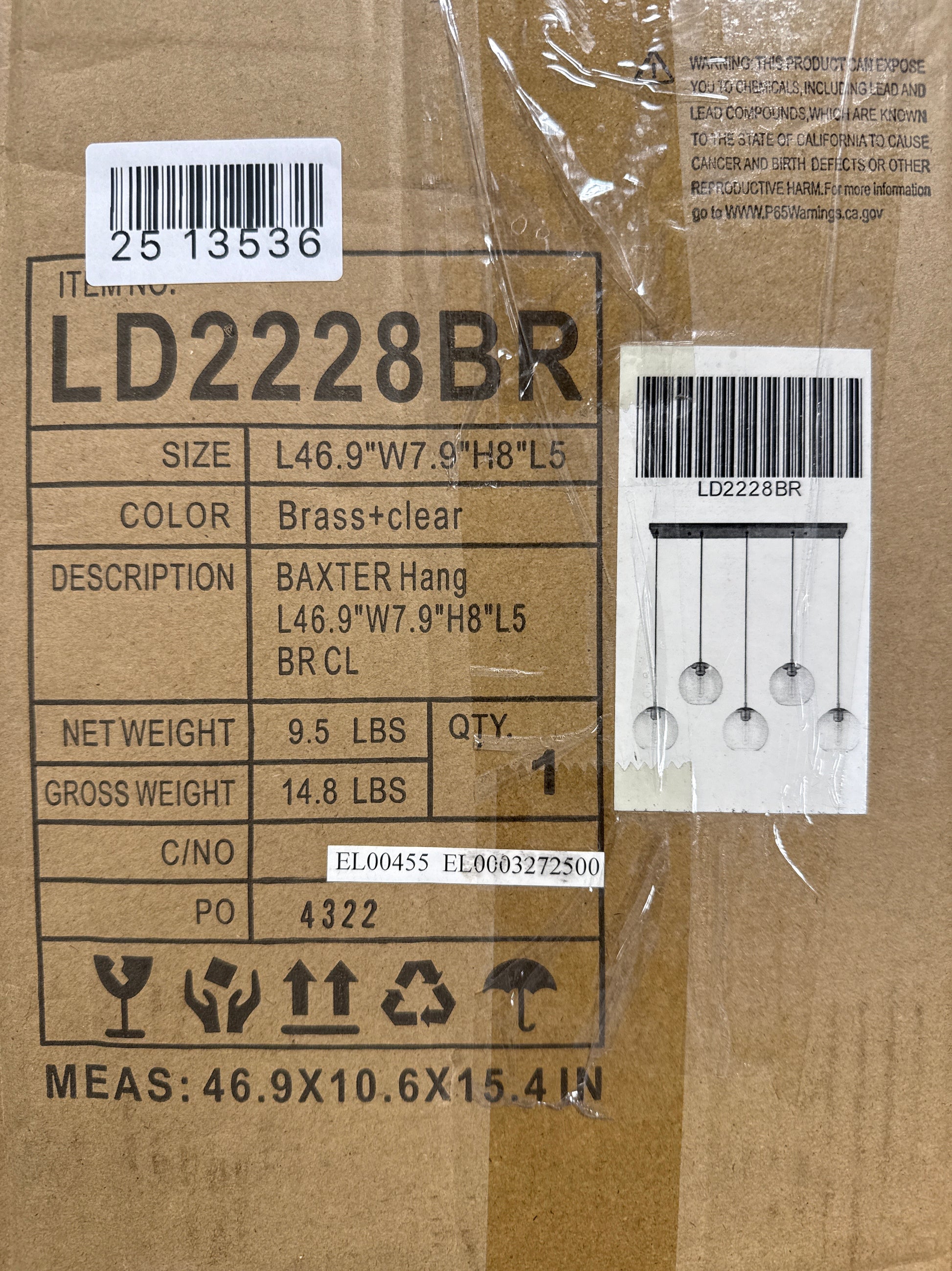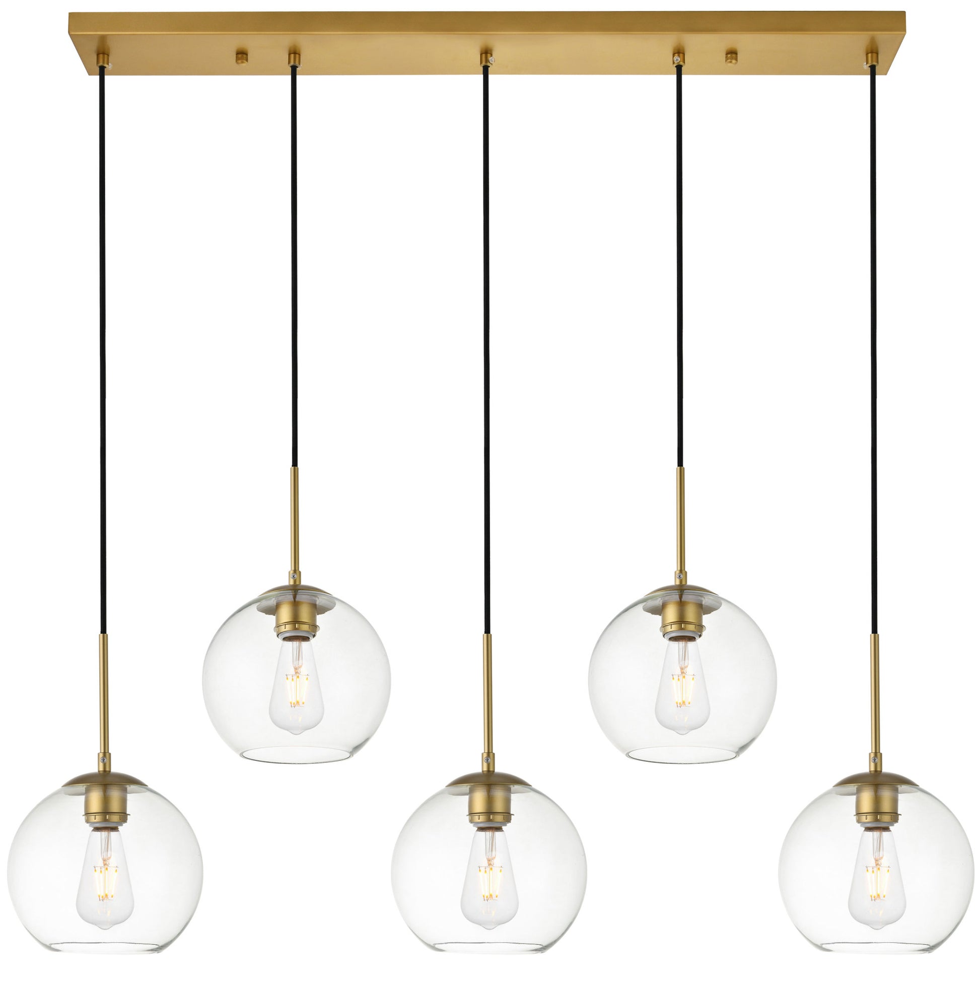Refined style with a practical design Baxter hanging pendant lamps bring cosmopolitan sophistication anywhere especially to an entryway office bathroom bedroom or kitchen. The smooth iron frame features a rectangular canopy and comes in a brass finish. Adjustable black cords allow you to vary the hanging height from 14 to 87 inches. Two staggered rows of five identical clear spherical glass shades remain open at the center to allow for effortless replacement of the filament-style bulbs (not included