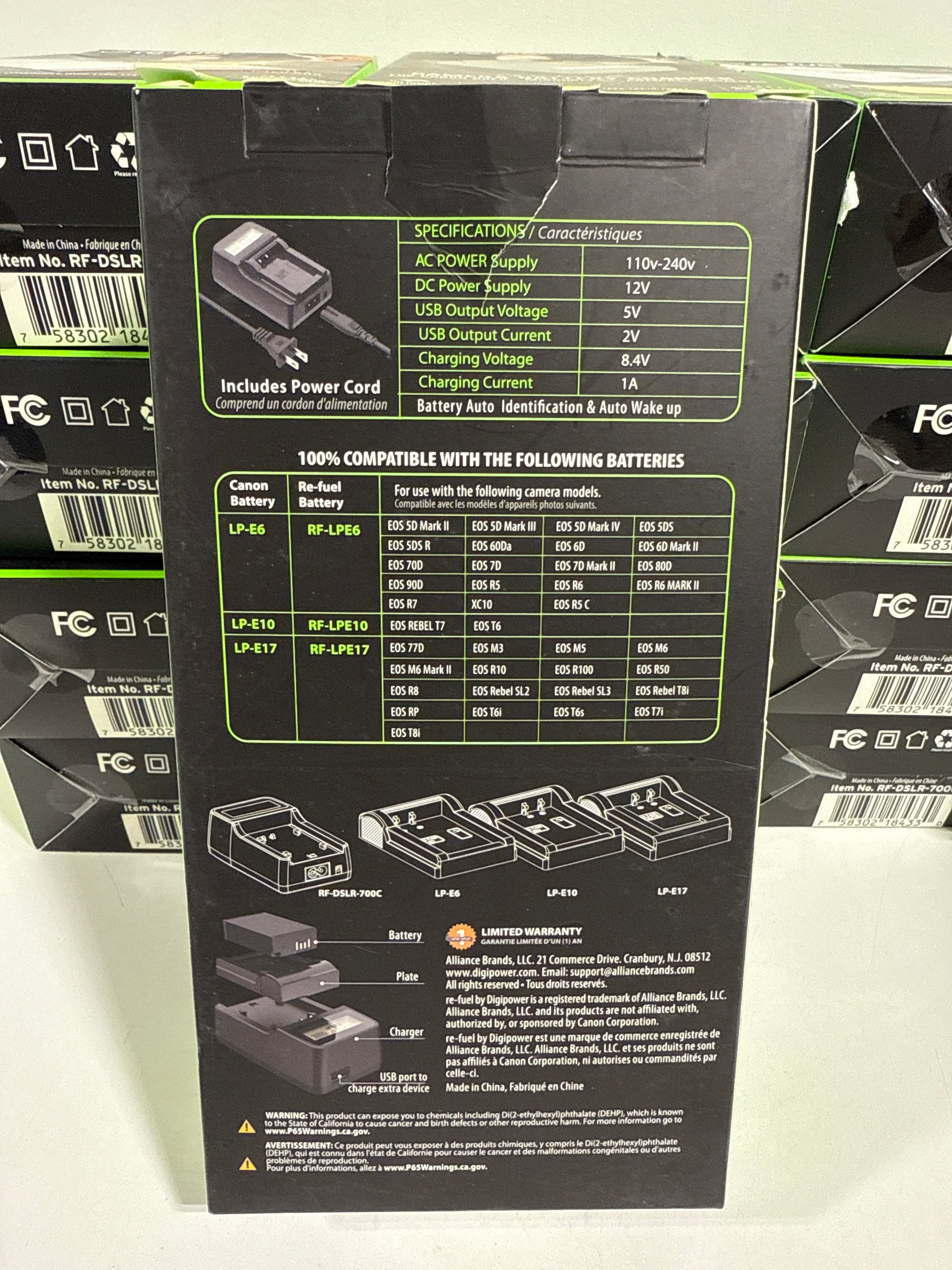 Lot of 16 - Digipower - Travel Charger for Mirrorless & DSLR Cannon Camera Batteries LPE6/LPE10/LPE17/NB/L12 - Black