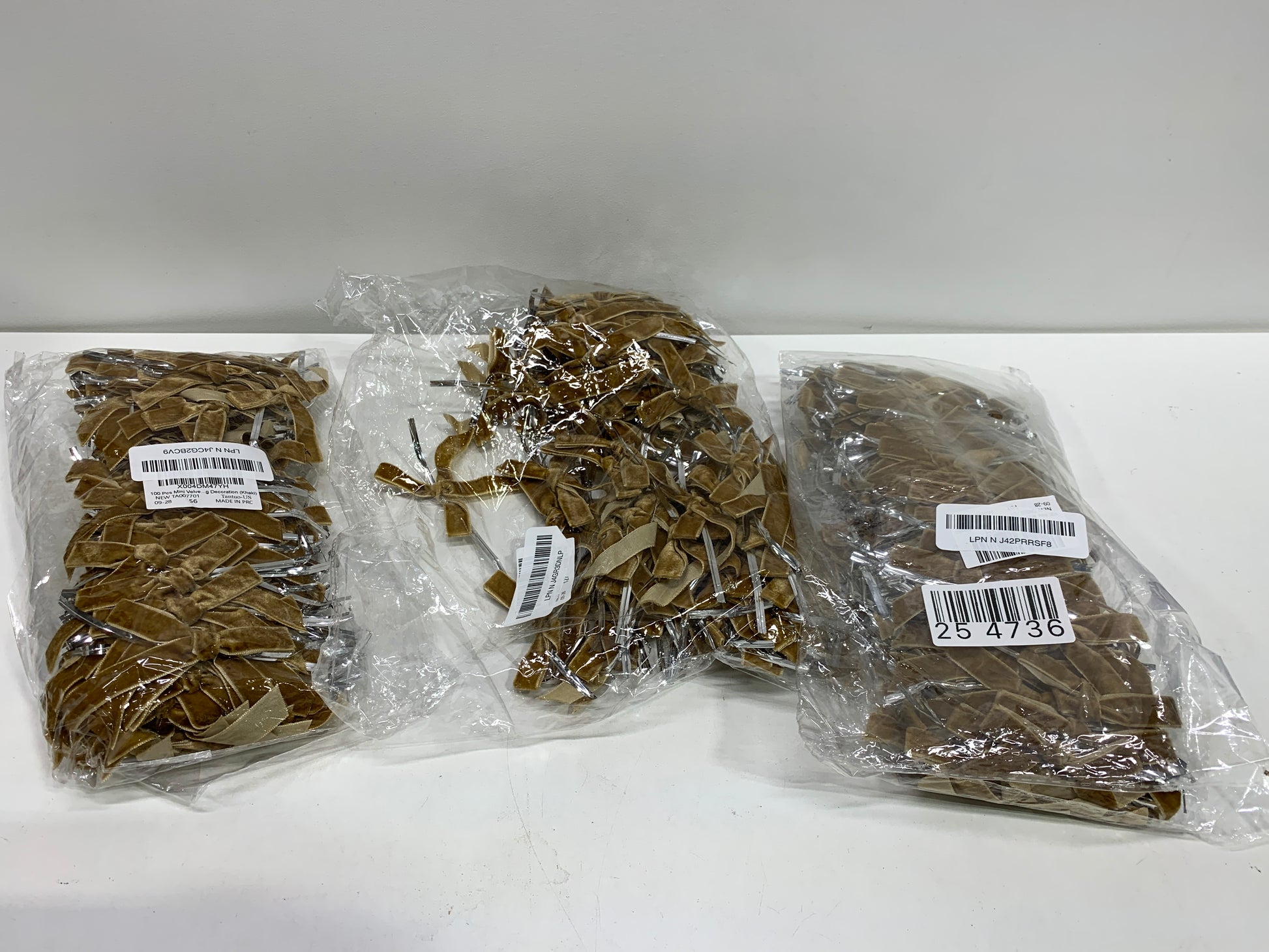 Lot of 3 - 100 Pcs Khaki Mini Velvet Bows 3 X 2 Inches Small Christmas Bows for Christmas Tree Wreath Garland Home Wedding Decoration