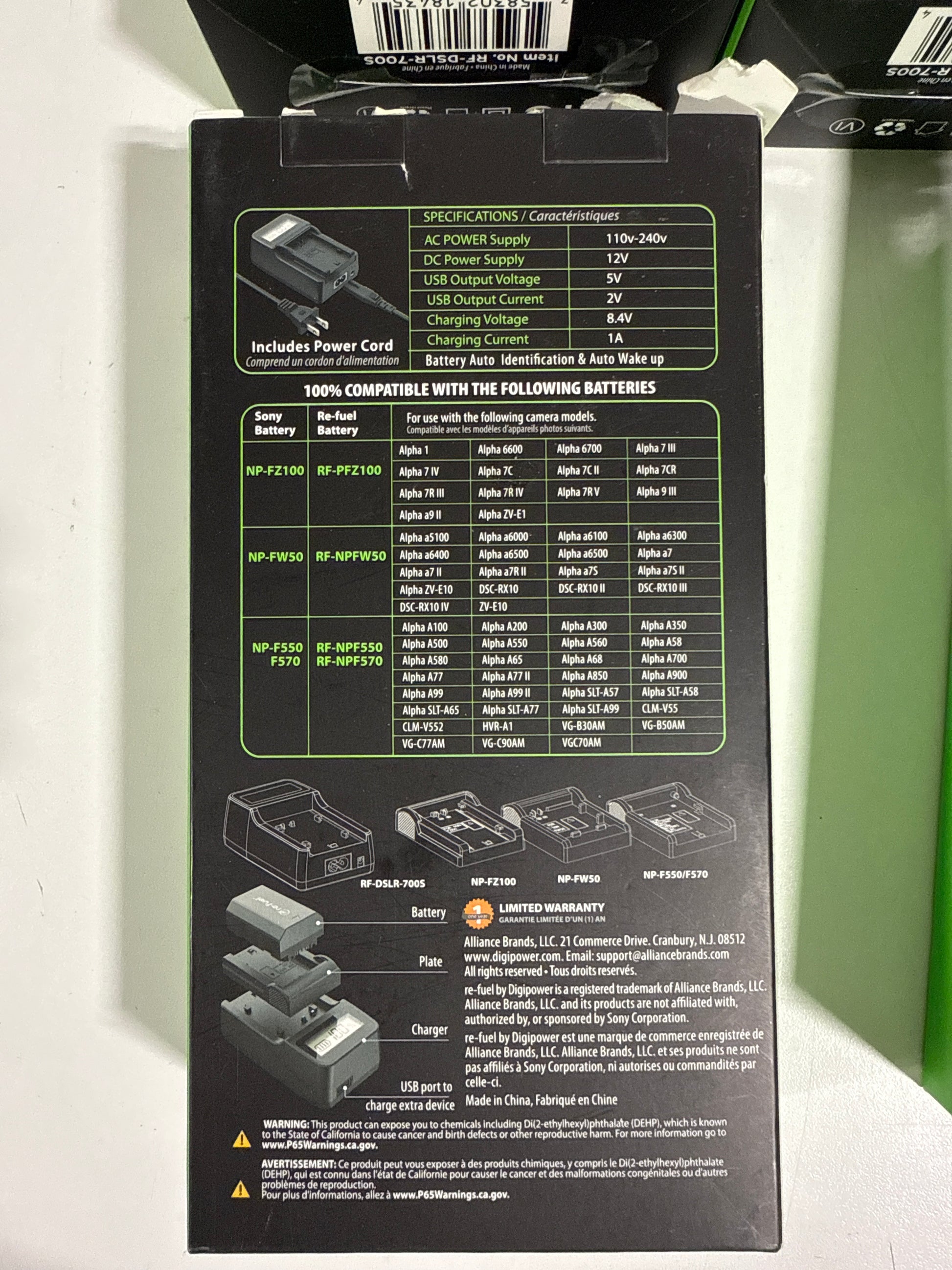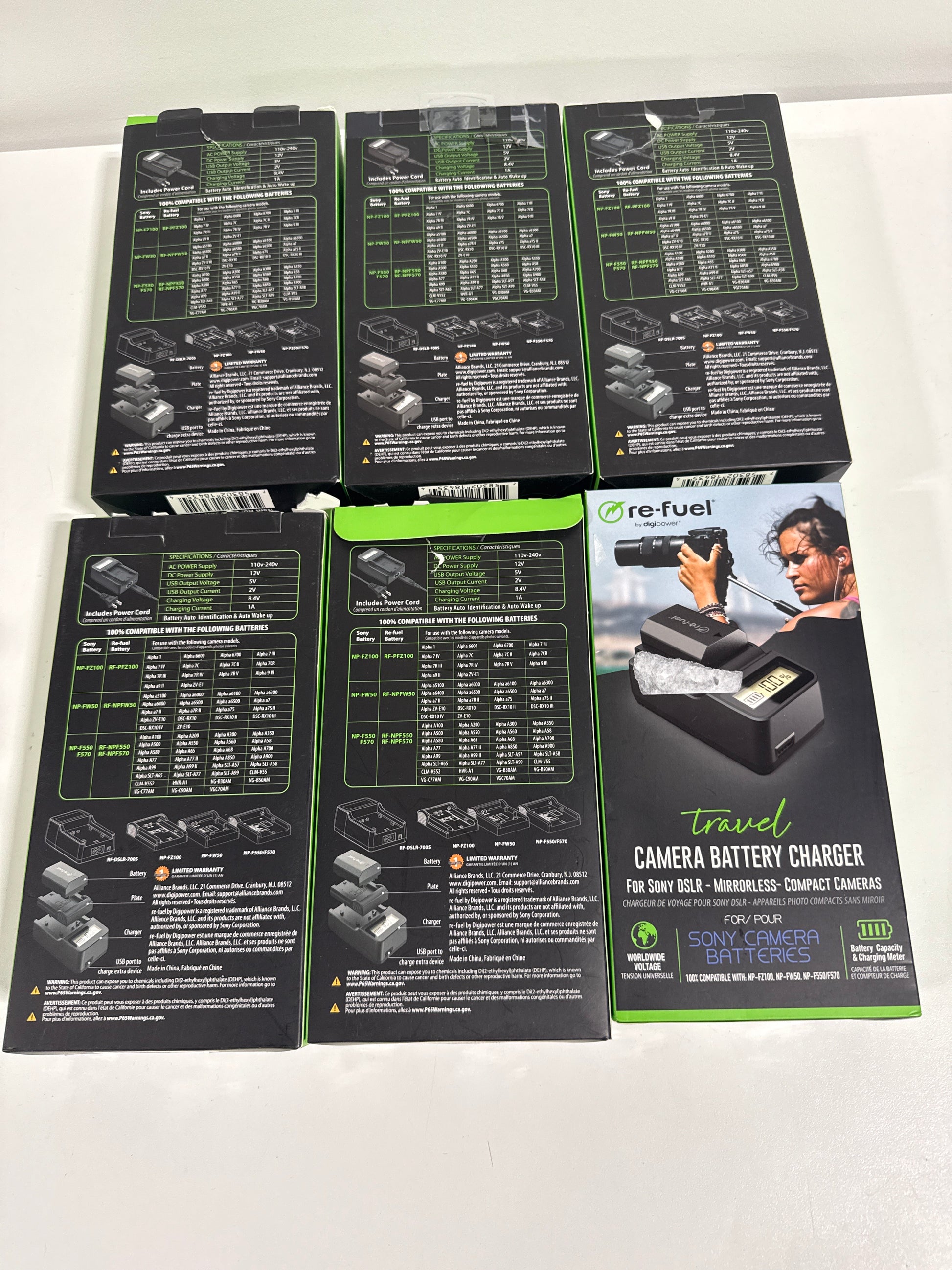 Lot of 6 Digipower - Mirrorless Travel Charger for Sony Replacement Batteries NP-FZ100/FW50/FM500F (Copy)