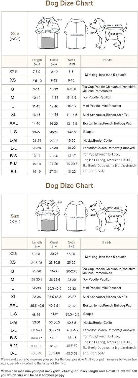 • PERFECT SIZE – Size XXS XS S suitable for young mini tea cup dogs which less than 6 pounds, M L XL XXL suitable for Small dogs, L-S L-M L-L are for medium large dogs. please check your dog's size before you have the order.