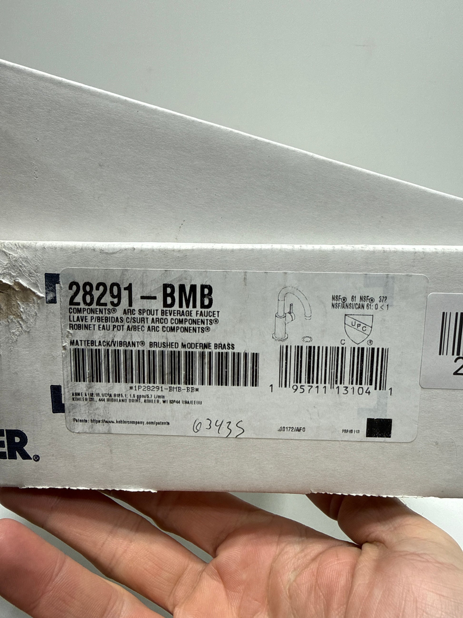 Scuff Kohler Components 1.5 GPM Cold Water Dispenser with Curved Spout Model: K-28291-BMB
